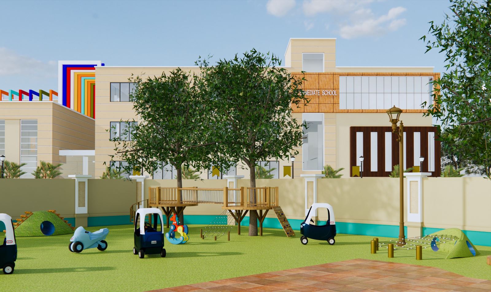 Thiết kế 3D khu vui chơi ngoài trời cho trường mầm non diện tích 850m2